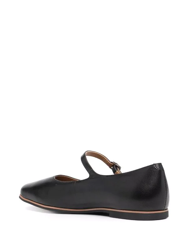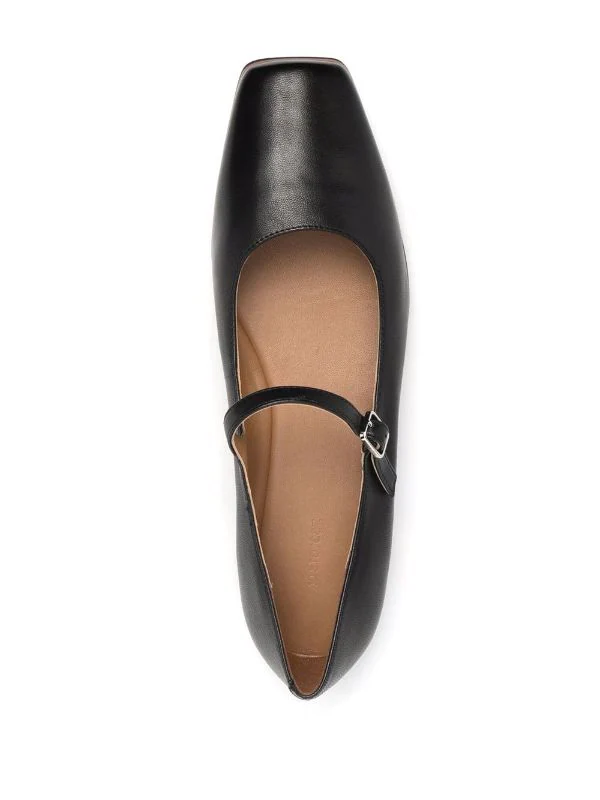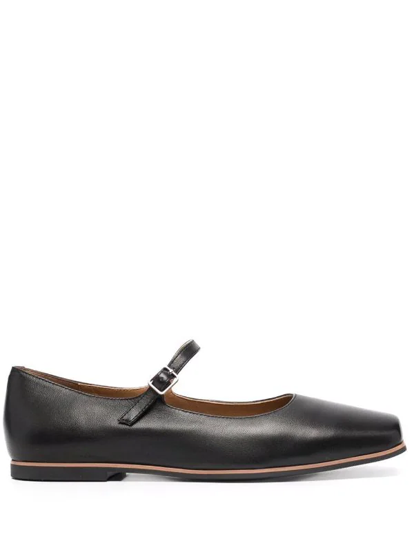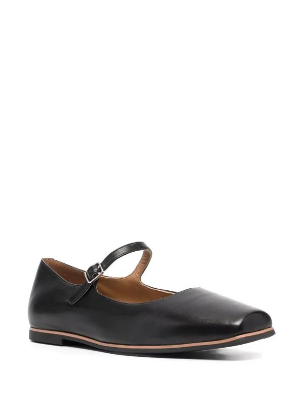 Fermeture à boucles sur les côtés, bout carré, semelle plate en caoutchouc, semelle intérieure à logo. Couleur : noir. Matière : cuir.