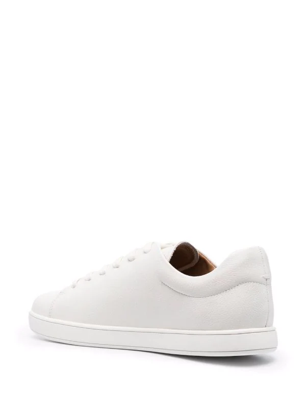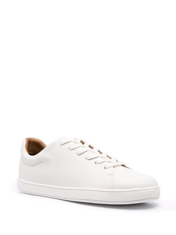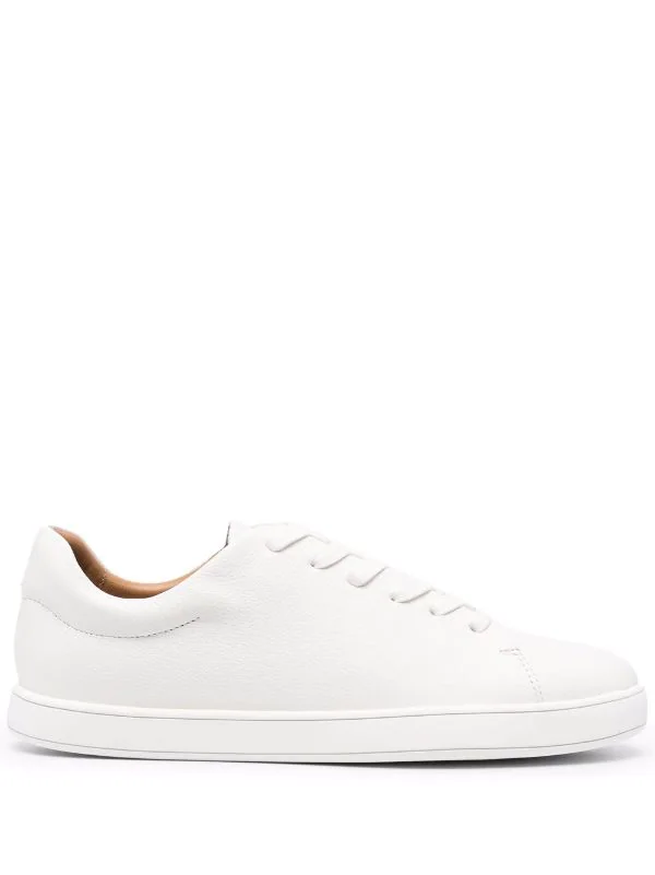 Cuir, blanc, fermeture à lacer sur le devant, semelle plate en caoutchouc, semelle intérieure griffée.