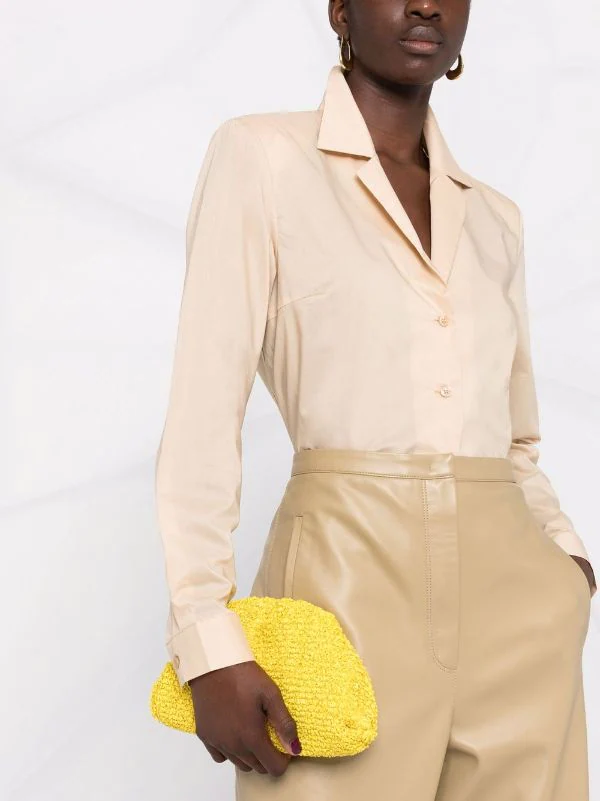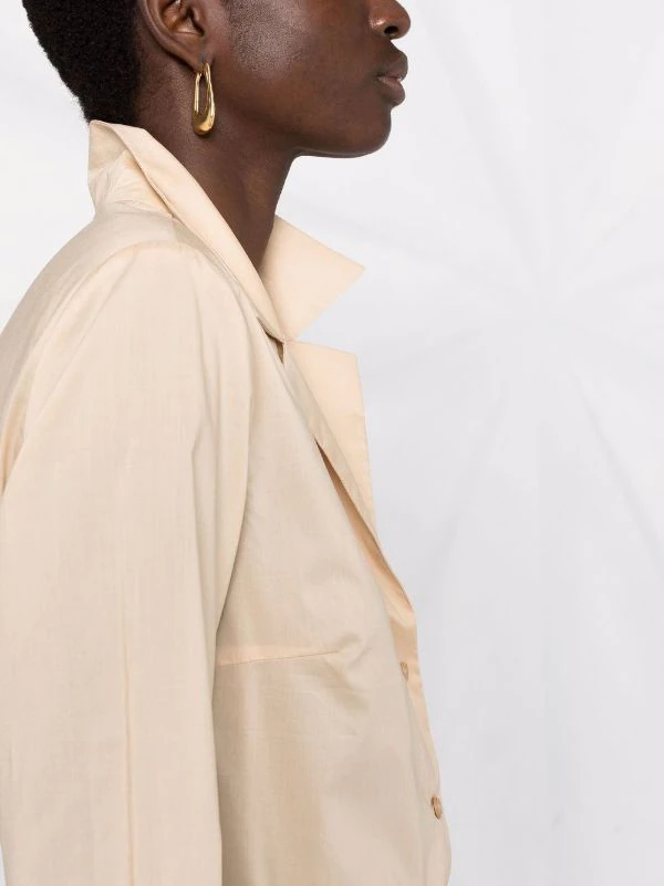 Col italien, boutonnière sur le devant, manches longues, ourlet incurvé. Matière : coton.
