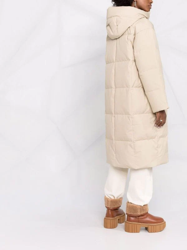 Design matelassé, capuche classique, fermeture zippée devant, manches longues. Matière : duvet.