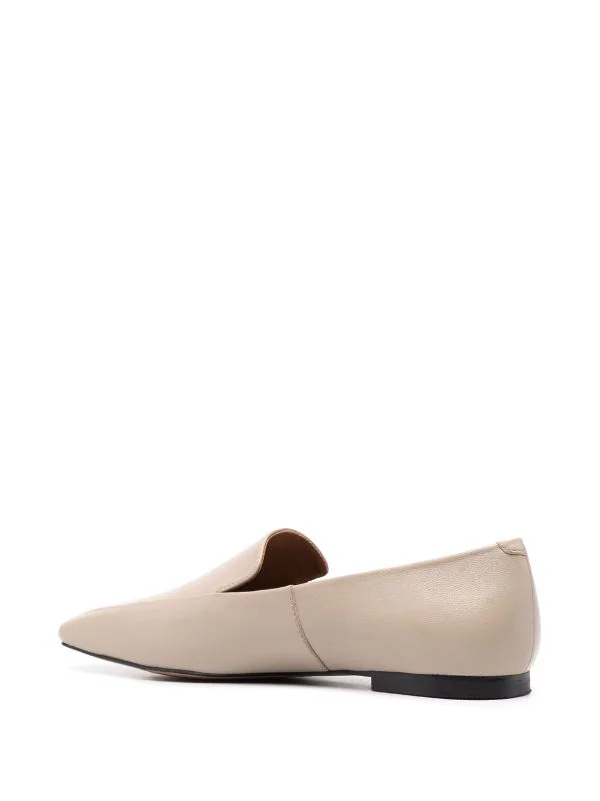 Coutures ton sur ton, design à enfiler, bout pointu, semelle intérieure griffée, petit talon. Matière : cuir.