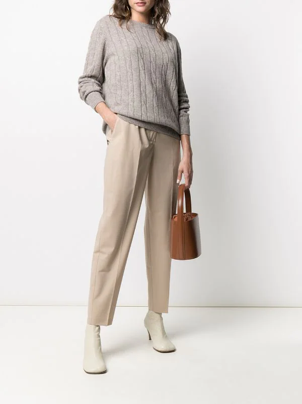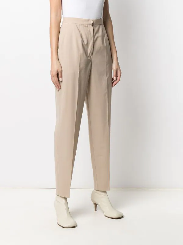 Taille haute, coupe fuselée, fermeture dissimulée sur le devant, poches latérales fendues, poche arrière passepoilée.