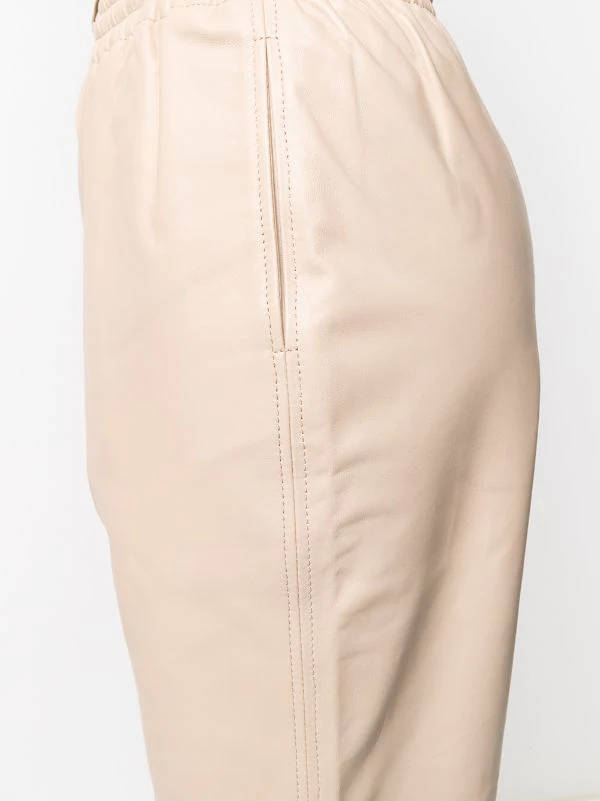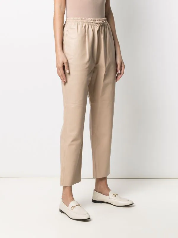 Ceinture élastique, lien de resserrage à la taille, coupe fuselée, poches latérales fendues.