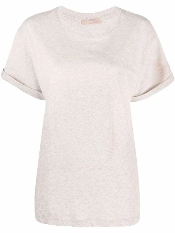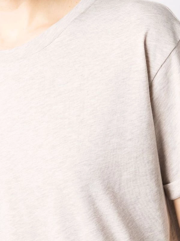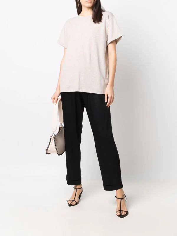 Monture oversize, encolure ronde, manches roulottées courtes, ourlet droit. Matière : coton.
