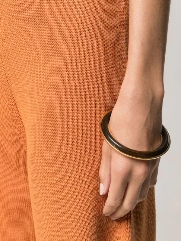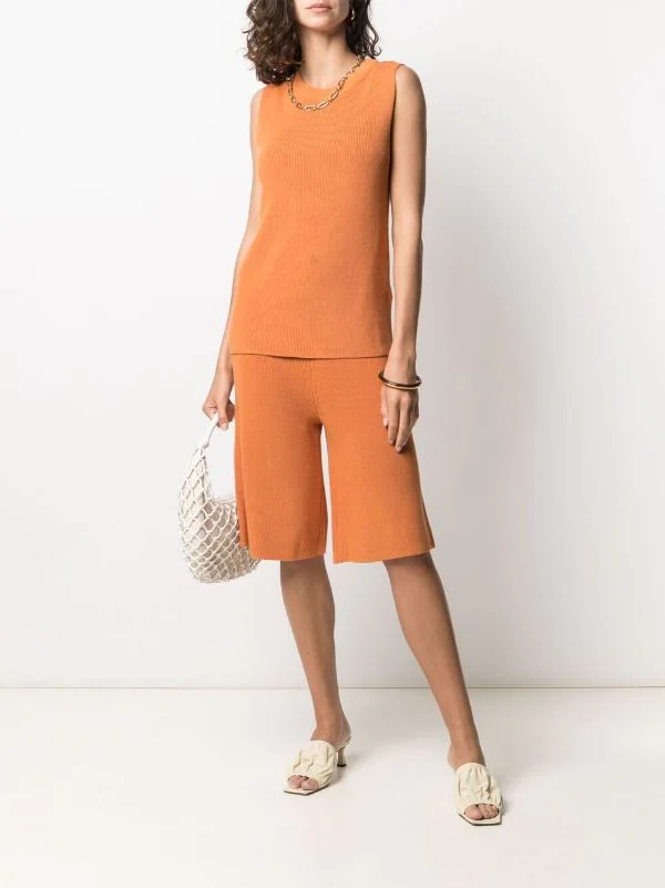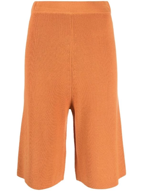 Design tricoté, coupe droite, taille haute, ceinture élastique. Couleur : orange.