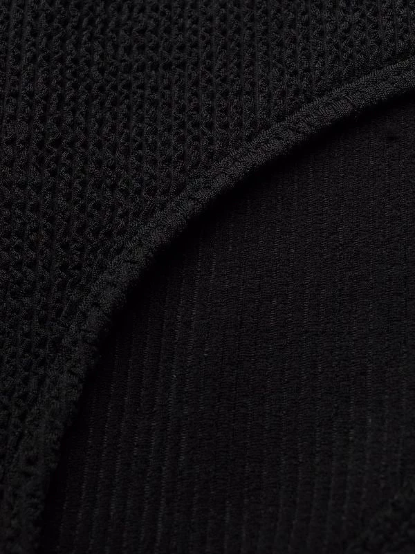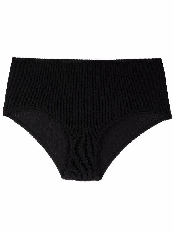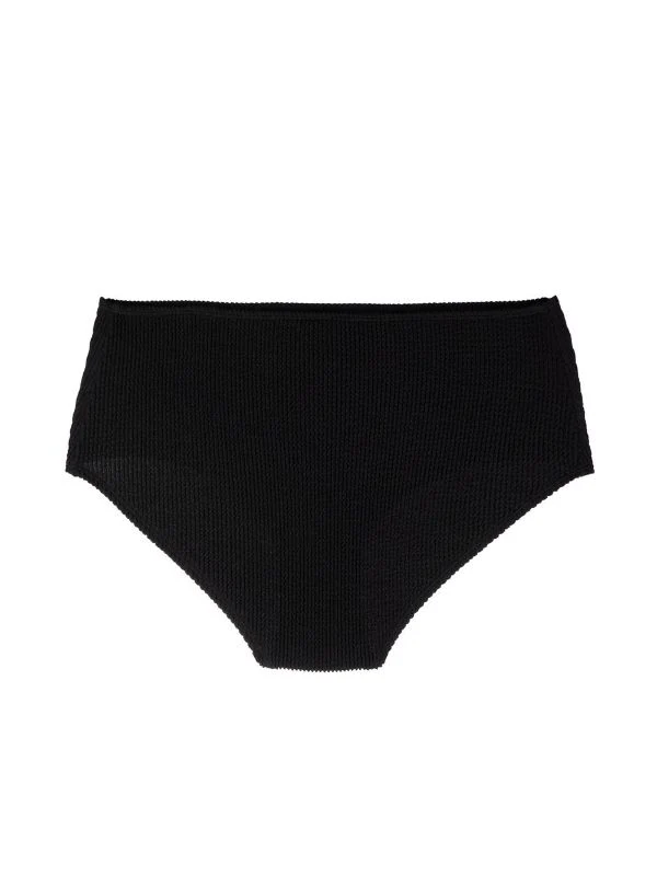Fini texturé, taille haute, ceinture élastique. Couleur : noir. Veillez à essayer les maillot de bain par-dessus vos propres sous-vêtements.