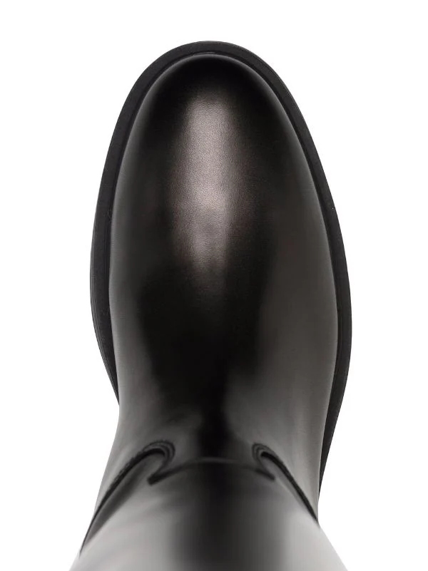 Fini poli, languette d’enfilage au talon, bout rond, semelle intérieure à logo, semelle plate en caoutchouc. Couleur : noir. Matière : cuir.