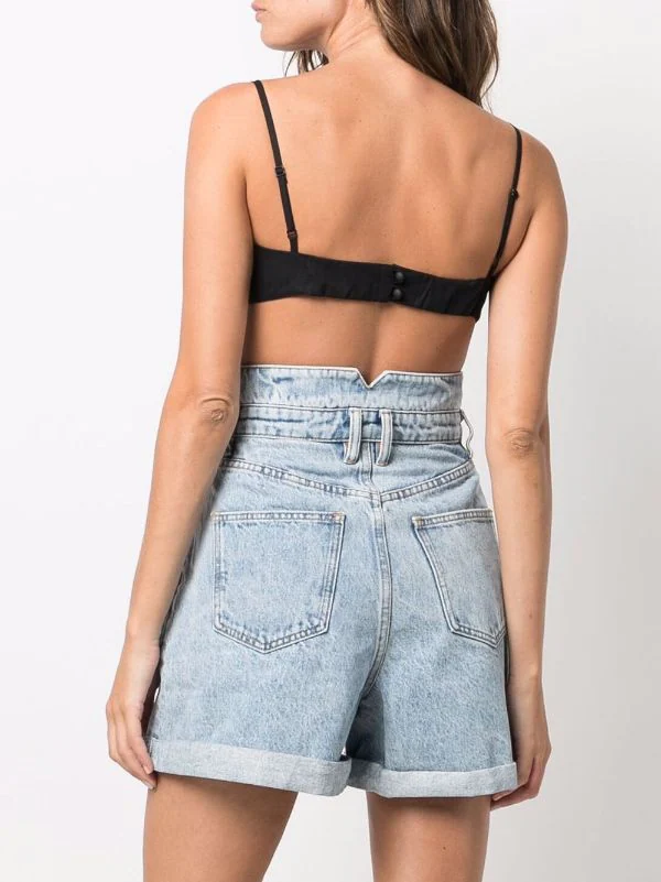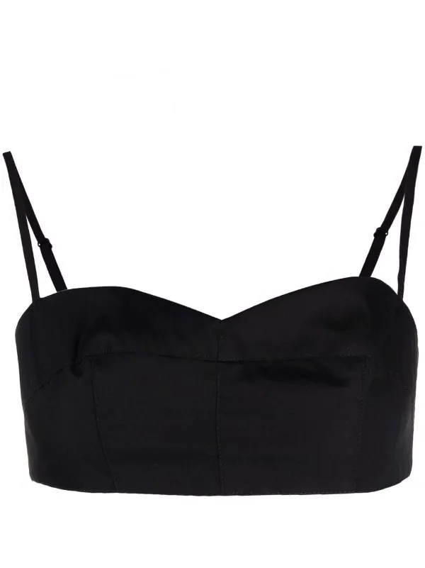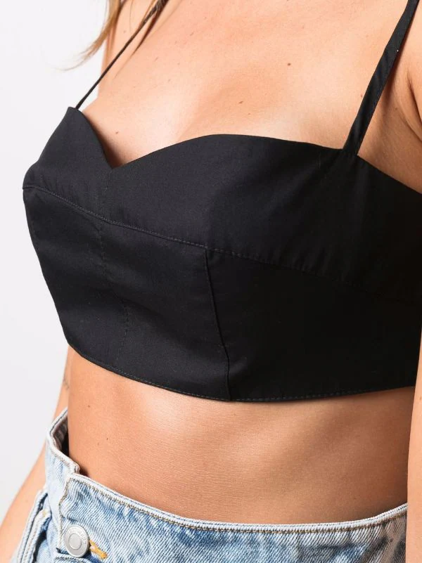 Encolure cœur, fines bretelles, fermeture cliquet à l’arrière, coupe courte. Couleur : noir. Matière : coton.