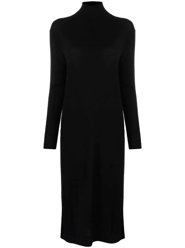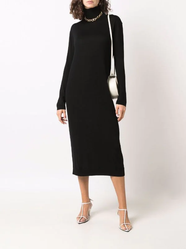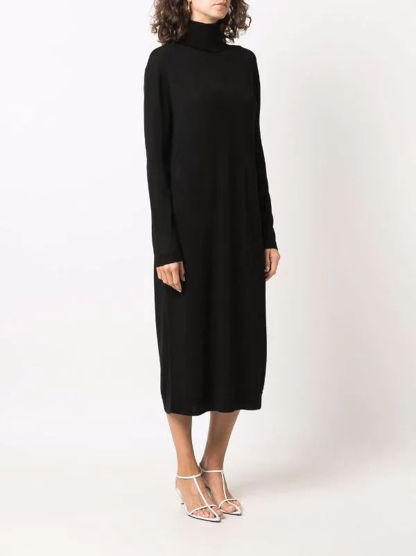 Design tricoté, col roulé, manches longues, coupe mi-longue. Couleur : noir. Matière : laine mérinos.