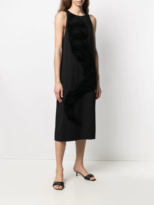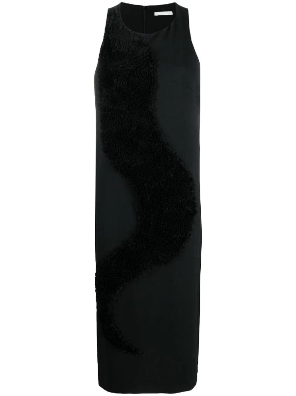 Design ton sur ton, fini texturé, design sans manches, encolure ronde, coupe évasée. Couleur : Noir.