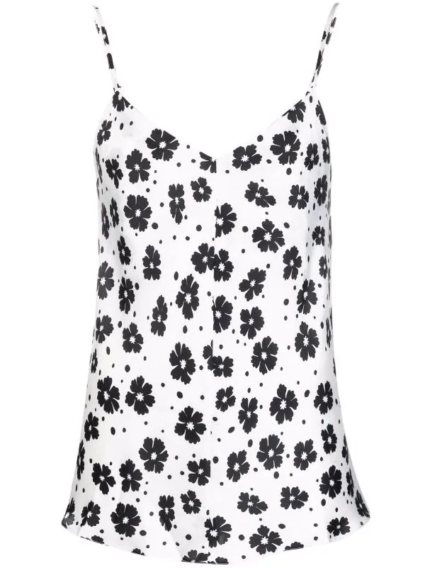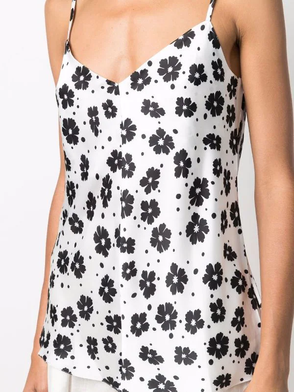Col v, bretelles fines ajustables, motif de fleurs, col v au dos.