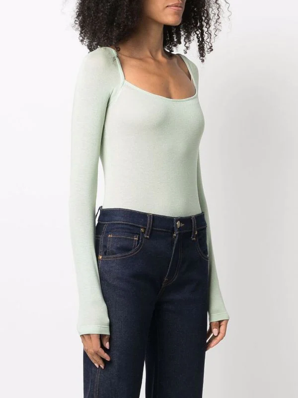 Construction stretch, encolure carrée, manches longues, encolure carrée au dos.