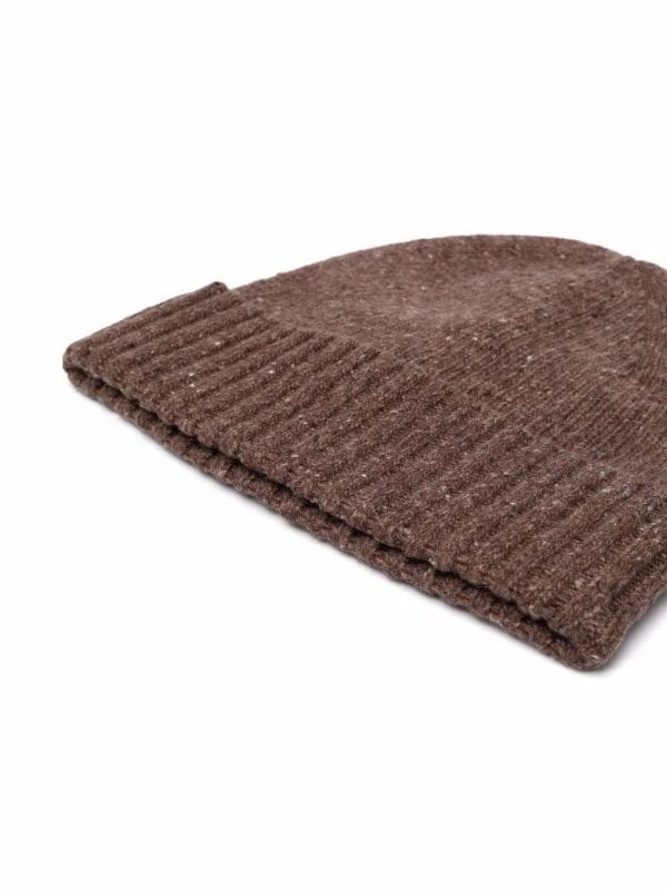 Texture grainée, design en maille, bord en maille côtelée, bord large retroussé.