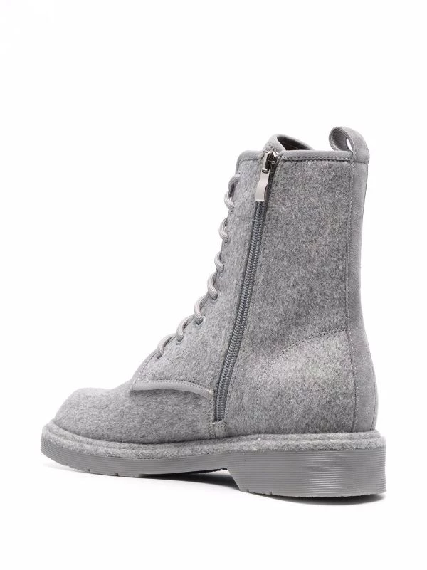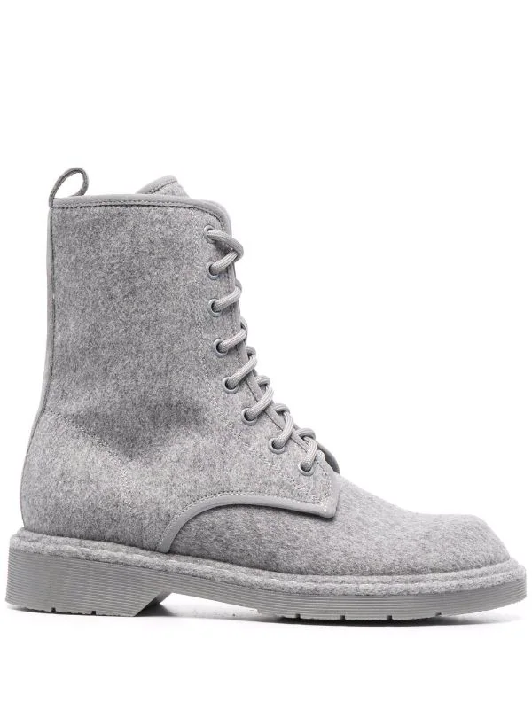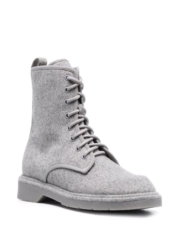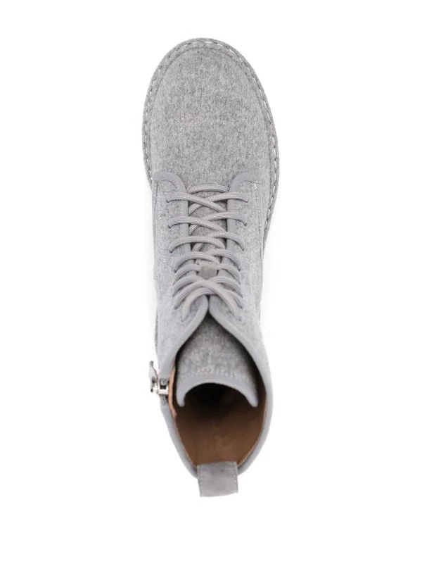 Effet chiné, liseré en cuir, bout en amande, fermeture à lacer sur le devant, languette d’enfilage au talon, hauteur cheville, semelle intérieure à logo, semelle plate en caoutchouc. Matière : cuir.