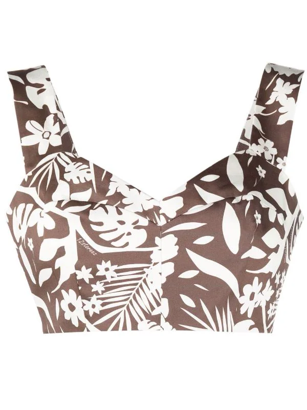 Imprimé à fleurs, encolure cœur, design sans manches, coupe courte.