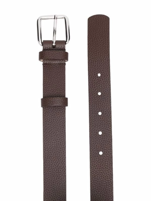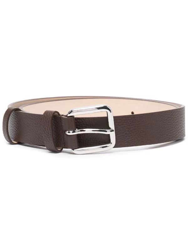 Texture grainée, fermeture à boucle, taille ajustable. Couleur : marron. Matière : cuir de veau.