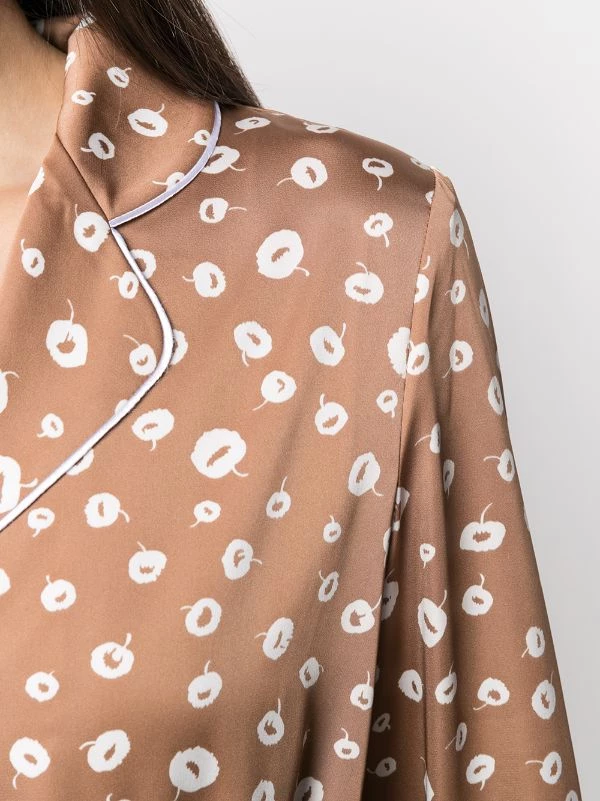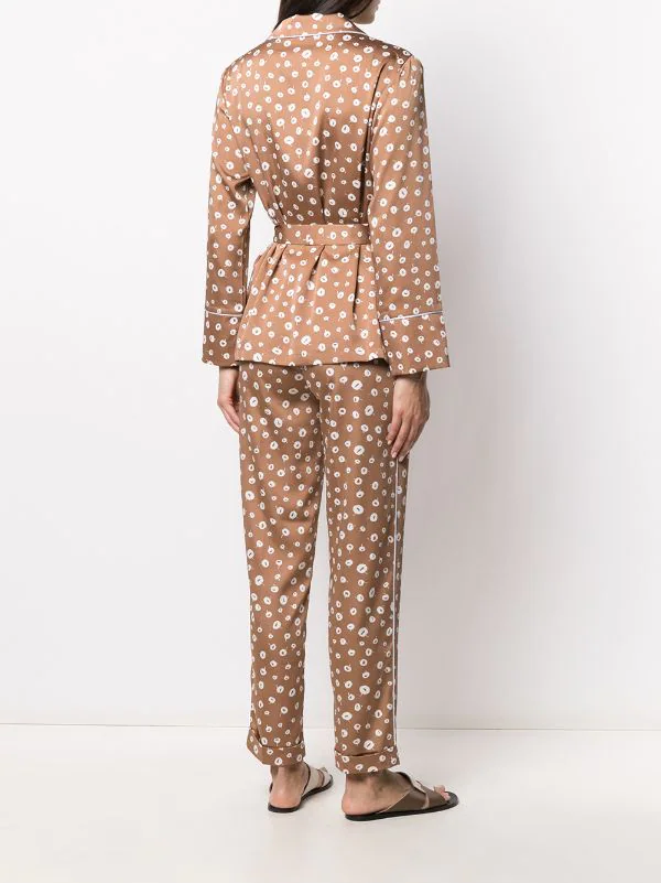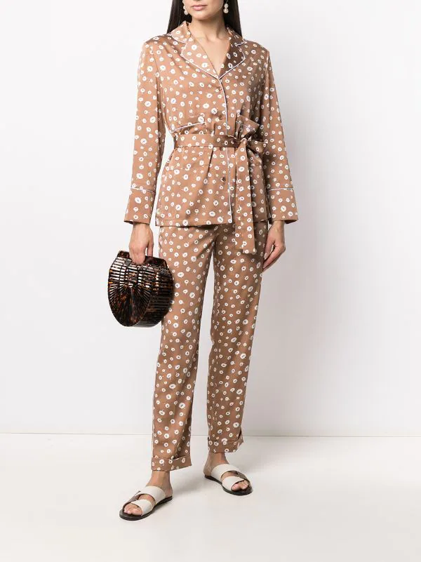 Motif de fleurs, finitions passepoilées, revers crantés, boutonnière sur le devant, manches longues, taille ceinturée, deux poches plaquées avant, taille haute, ceinture élastique, deux poches latérales passepoilées, finitions passepoilées, coupe droite.