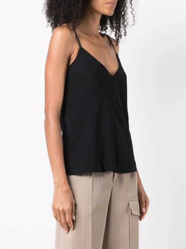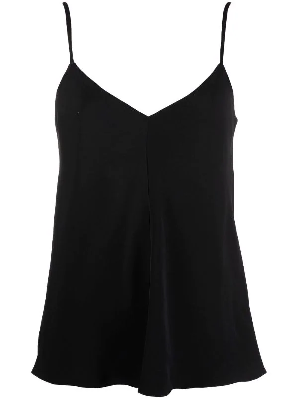 Col v, col v au dos, fines bretelles, ourlet droit. Couleur : noir.