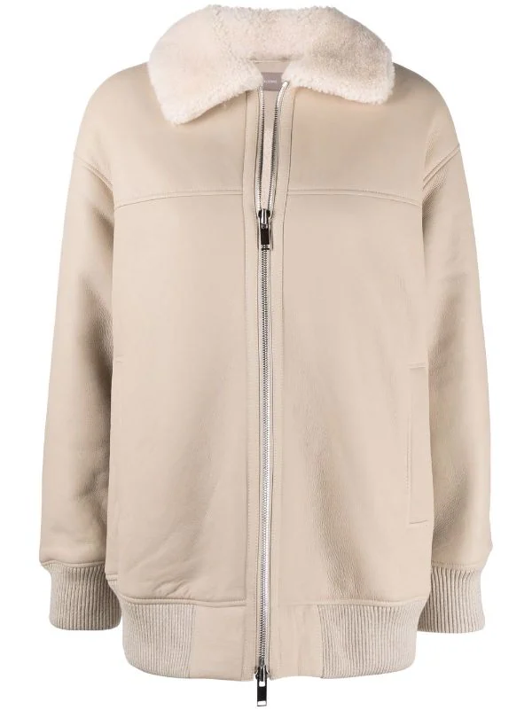 Col classique, poches latérales fendues, fermeture zippée devant, manches longues.