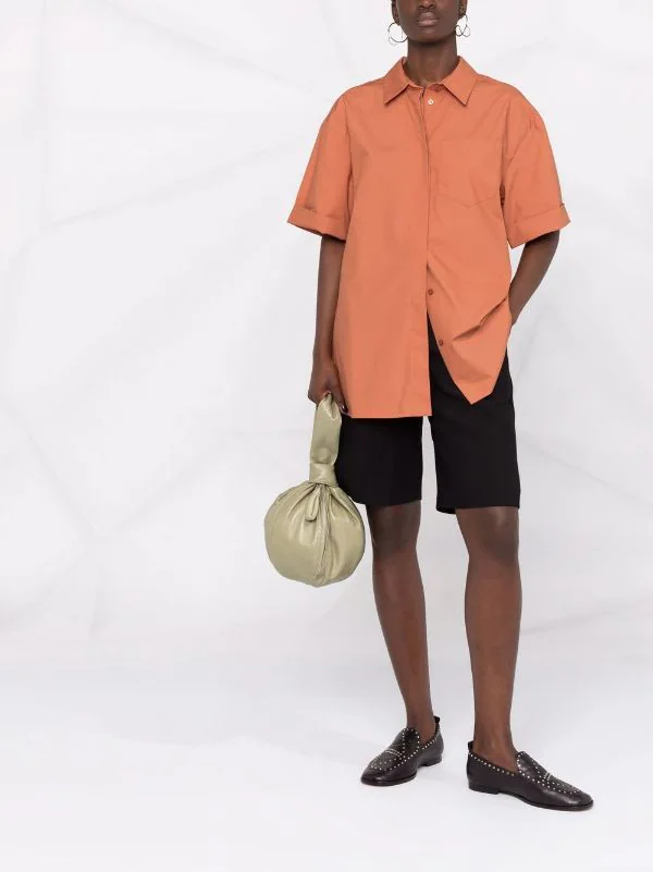 Col classique, boutonnière dissimulée sur le devant, manches courtes, poche poitrine plaquée, ourlet droit. Couleur : orange. Matière : coton.