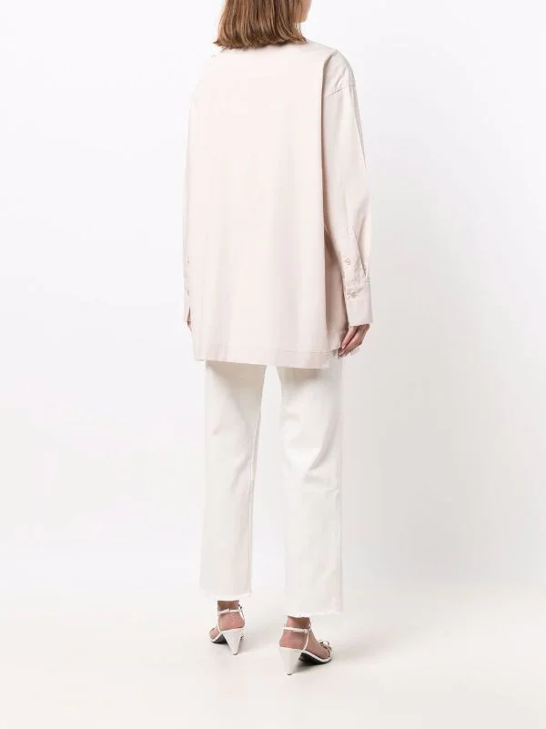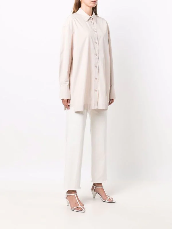 Col classique, boutonnière sur le devant, manches longues, ourlet droit. Matière : coton.
