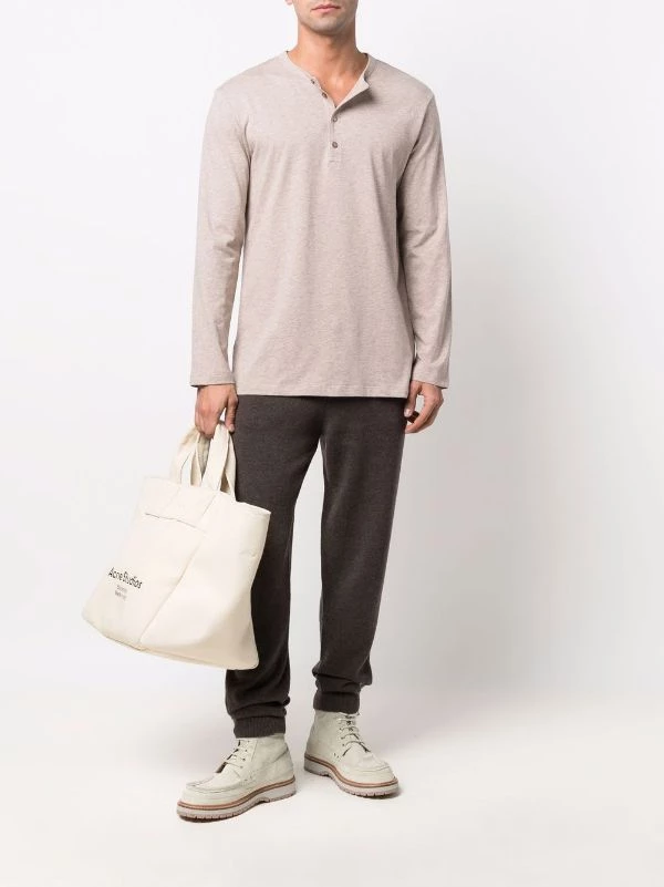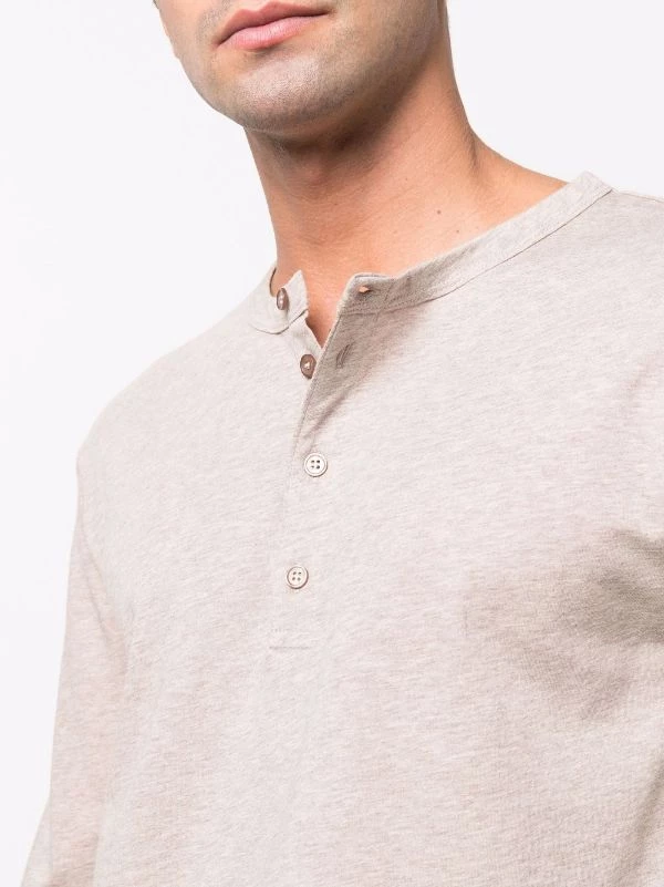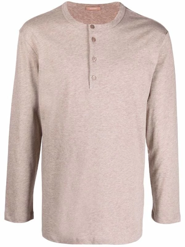 Encolure ronde, patte de boutonnage sur le devant, manches longues, ourlet droit. Couleur : marron. Matière : coton.