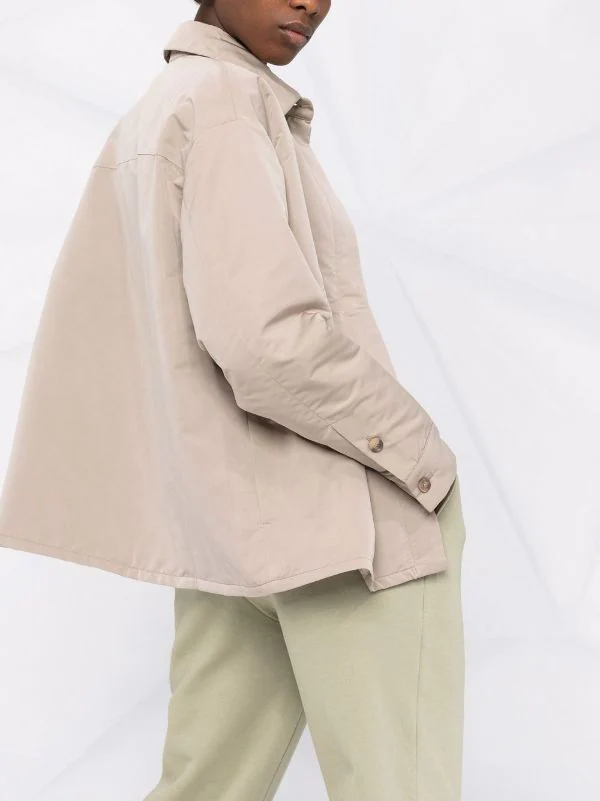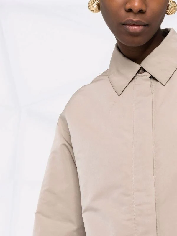 Design matelassé, col classique, manches longues, poignets boutonnés, boutonnière dissimulée sur le devant.