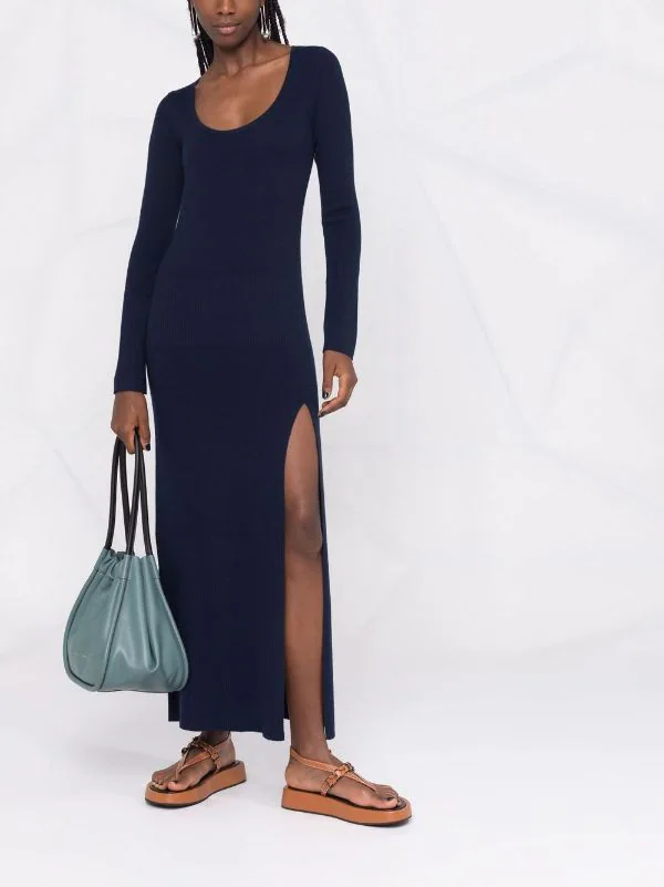 Maille nervurée, encolure arrondie, manches longues, coupe longue. Matière : laine mérinos.