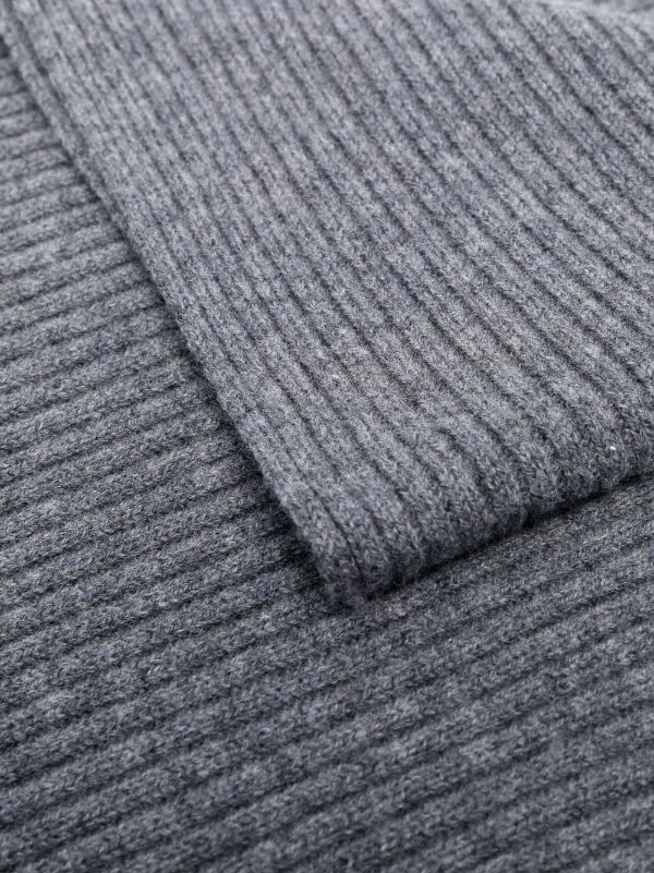 Maille nervurée, bords finis. Matière : laine mérinos.