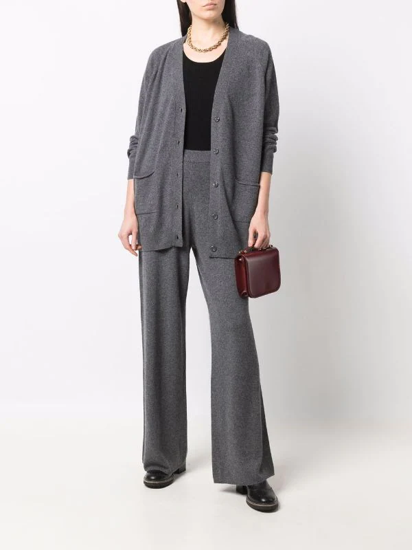 Design en maille, taille haute, détail nervuré, coupe ample. Matière : cachemire.