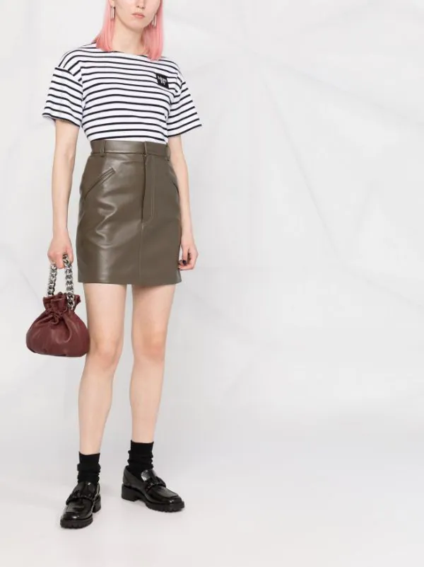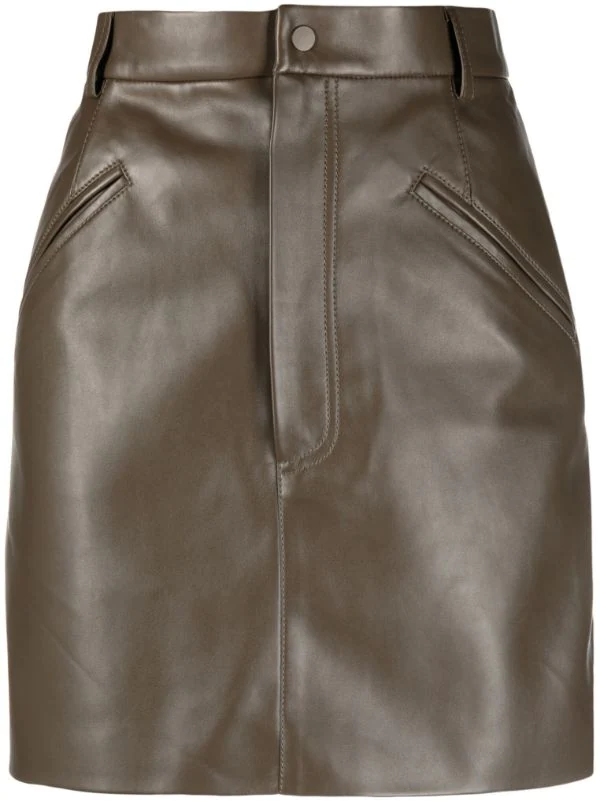 Taille haute, passants de ceinture, bouton pression et fermeture zippée sur le devant, deux poches passepoilées avant, coupe trapèze, finitions en métal ton sur ton.