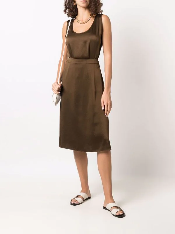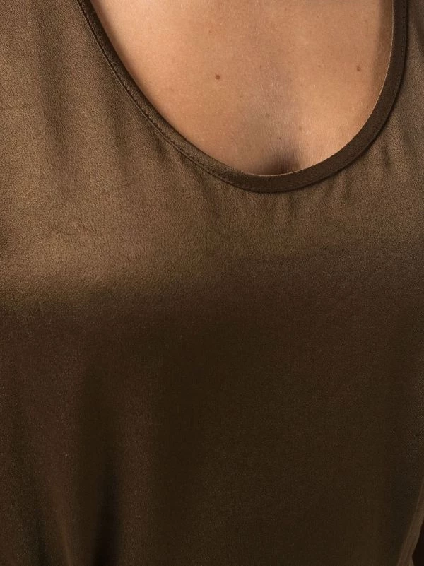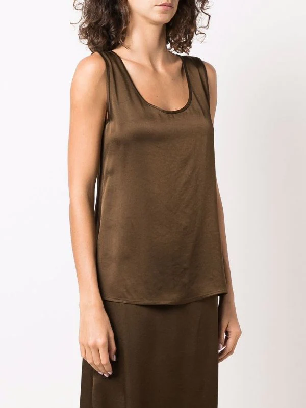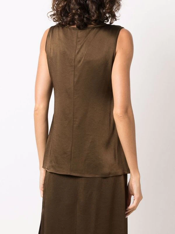 Fini métallisé, encolure arrondie, design sans manches. Couleur : marron.