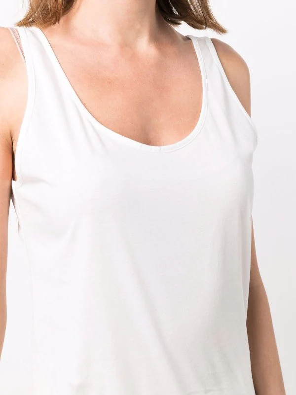 Encolure arrondie, design sans manches, ourlet droit. Couleur : blanc.