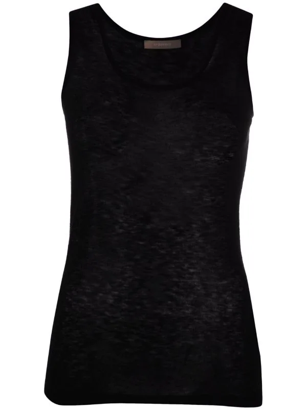 Effet de transparence, design sans manches, encolure ronde, ourlet droit. Couleur : noir. Matière : laine mérinos.