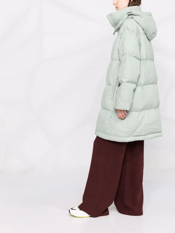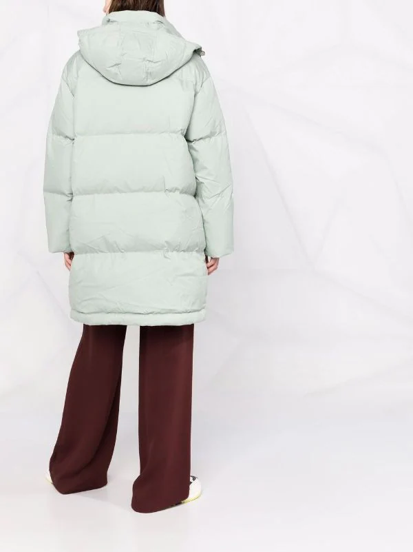Design matelassé, design matelassé, capuche classique, col à boutons pression, bouton pression et fermeture zippée sur le devant, garnissage en duvet.