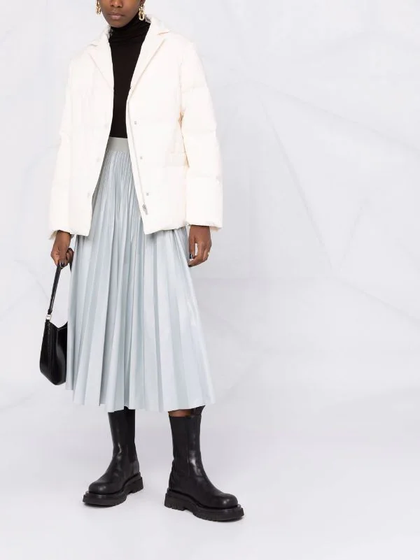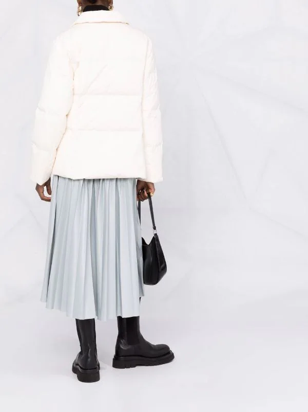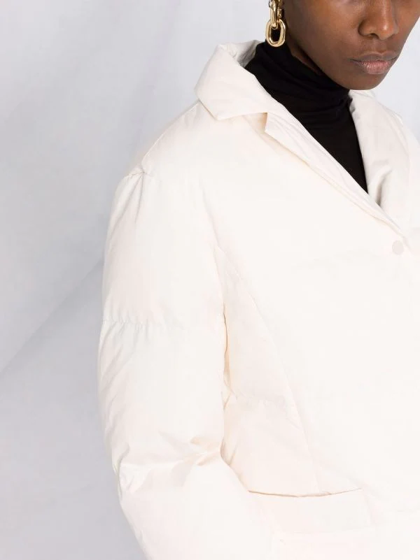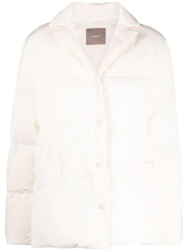 Garnissage en duvet, design matelassé, col cranté, fermeture à boutons pression sur le devant, manches longues, poignets élastiqués, deux poches passepoilées avant.