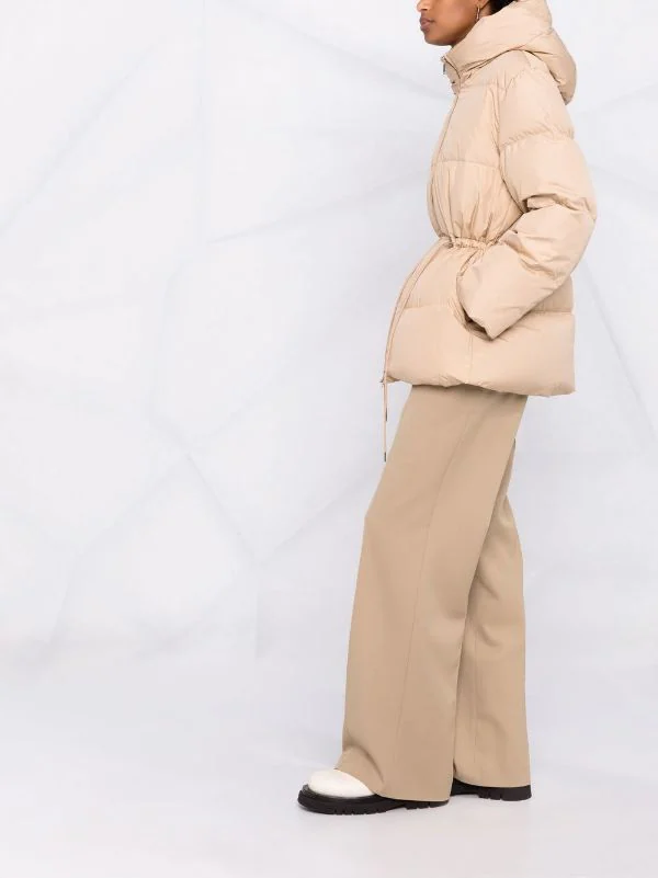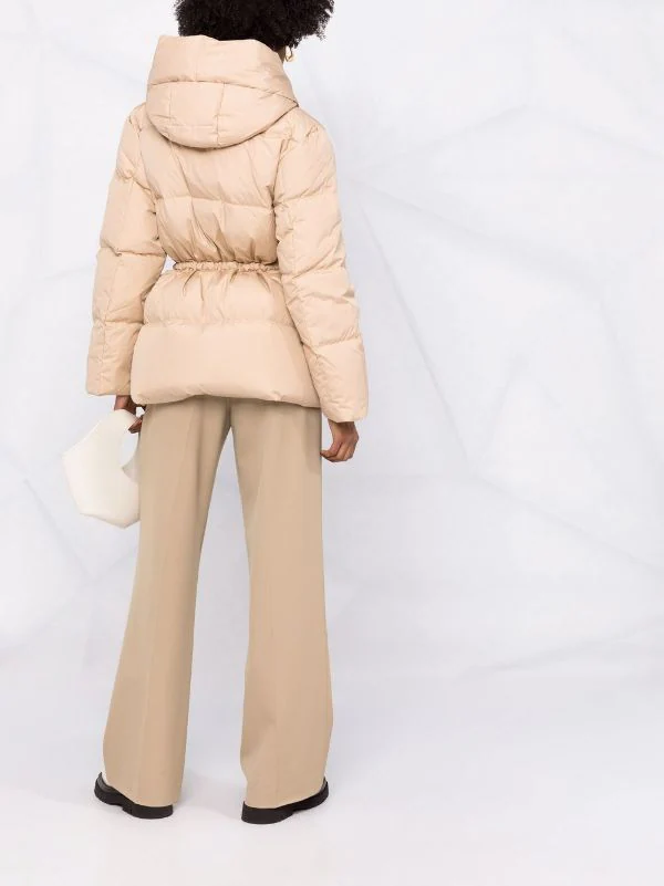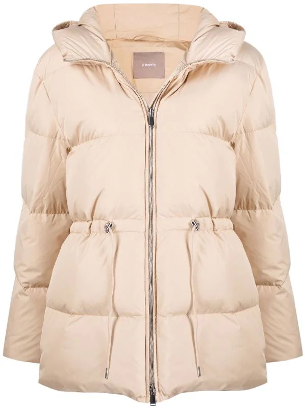 Garnissage en duvet, design matelassé, design matelassé, capuche classique, taille à lien de resserrage, fermeture zippée à double sens sur le devant, manches longues, poches latérales fendues, hydrofuge.
