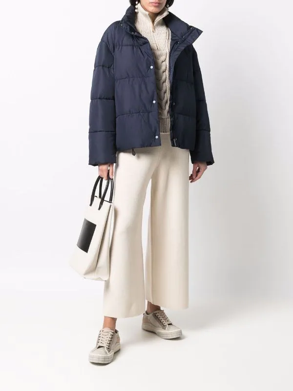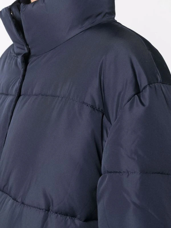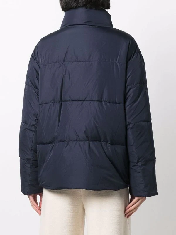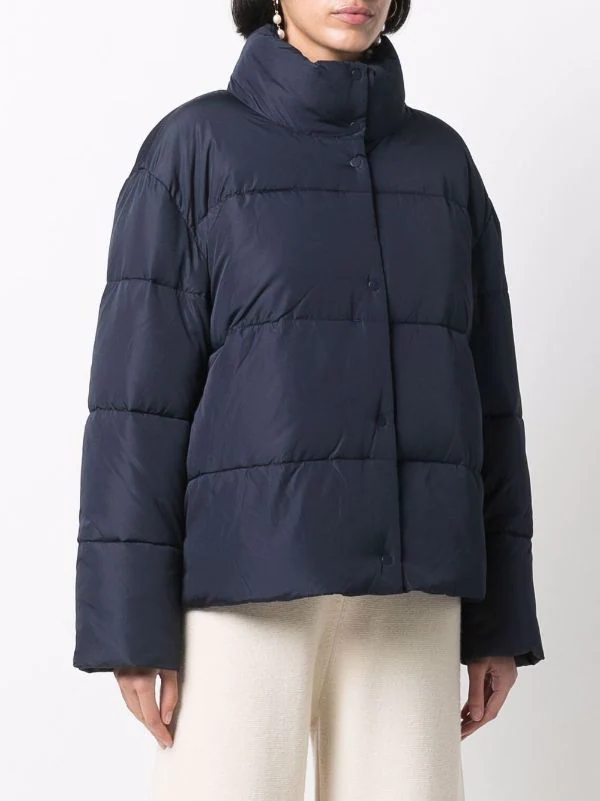 Design matelassé, col montant, fermeture zippée devant, manches longues. Couleur : bleu.