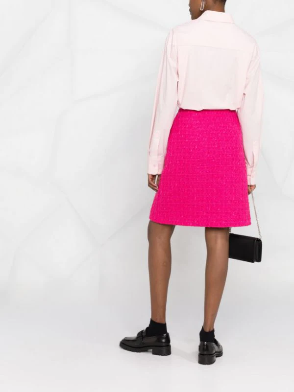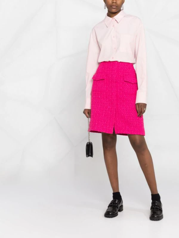 Design bouclé, fermeture dissimulée sur le devant, poches devant à rabat, hauteur genou.