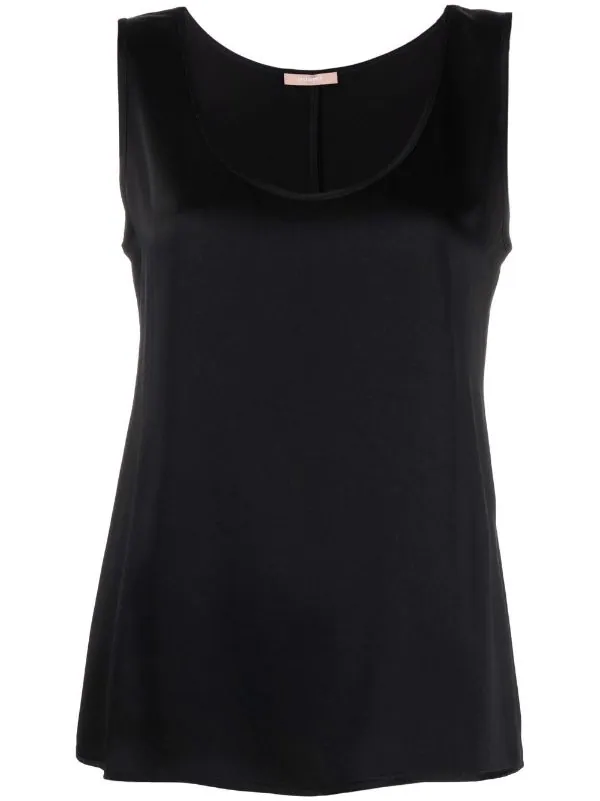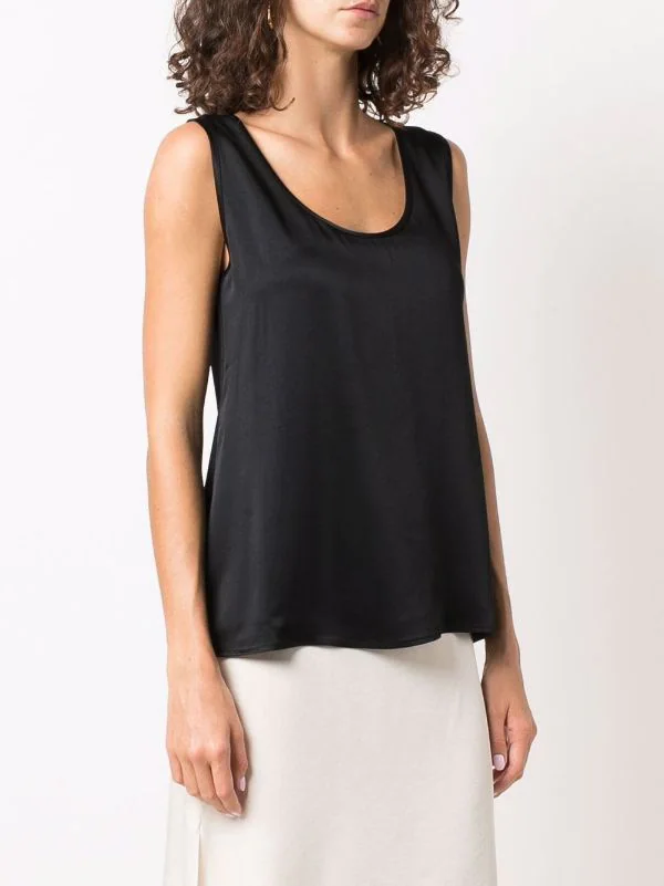 Coupe évasée, encolure arrondie, design sans manches. Couleur : noir.