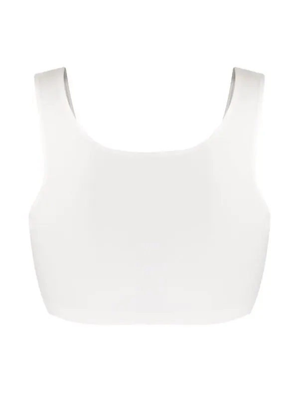 Coutures invisibles, encolure arrondie, design sans manches, coupe courte. Couleur : blanc.