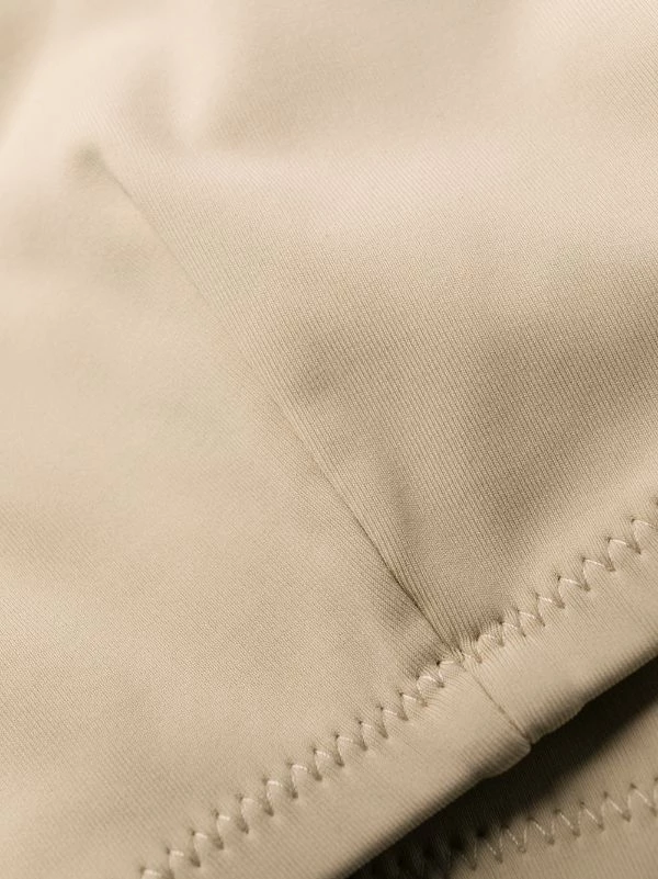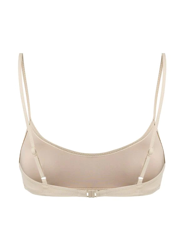 Encolure ronde, fines bretelles, fermeture à œillets et agrafes au dos. Veillez à essayer les maillots de bain par-dessus vos sous-vêtements.