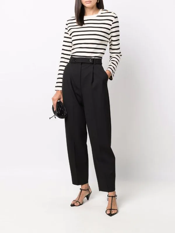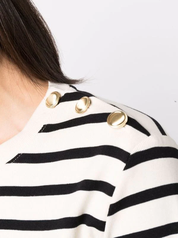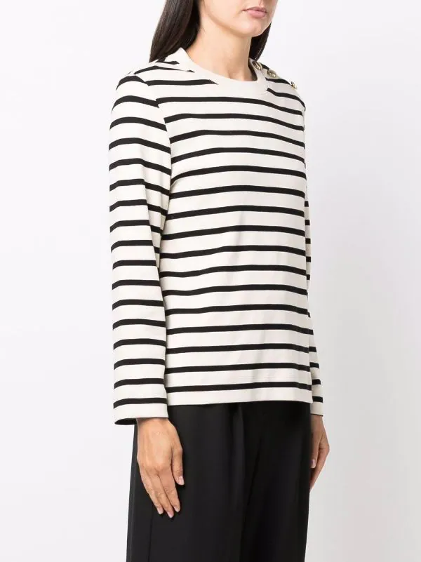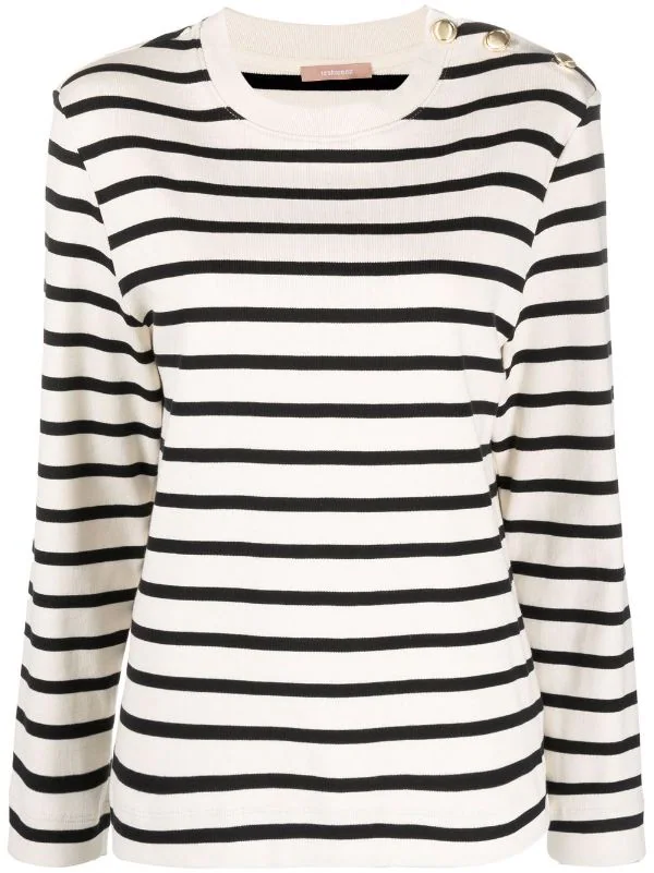 Détails rayés, fermeture boutonnée sur l’épaule, encolure ronde, manches longues, ourlet droit. Matière : coton.
