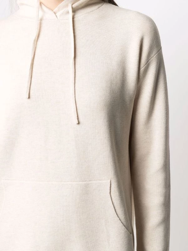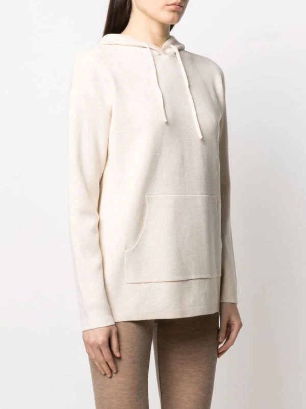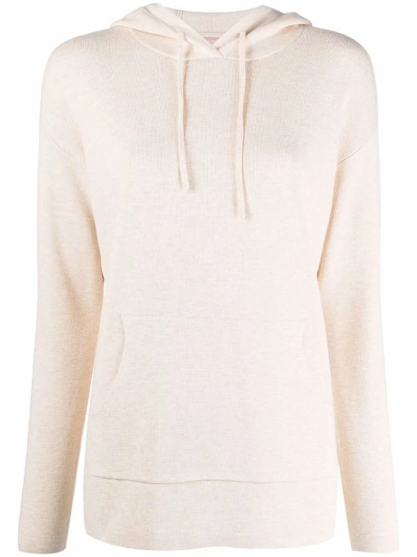 Capuche à lien de resserrage, manches longues, deux poches passepoilées avant.