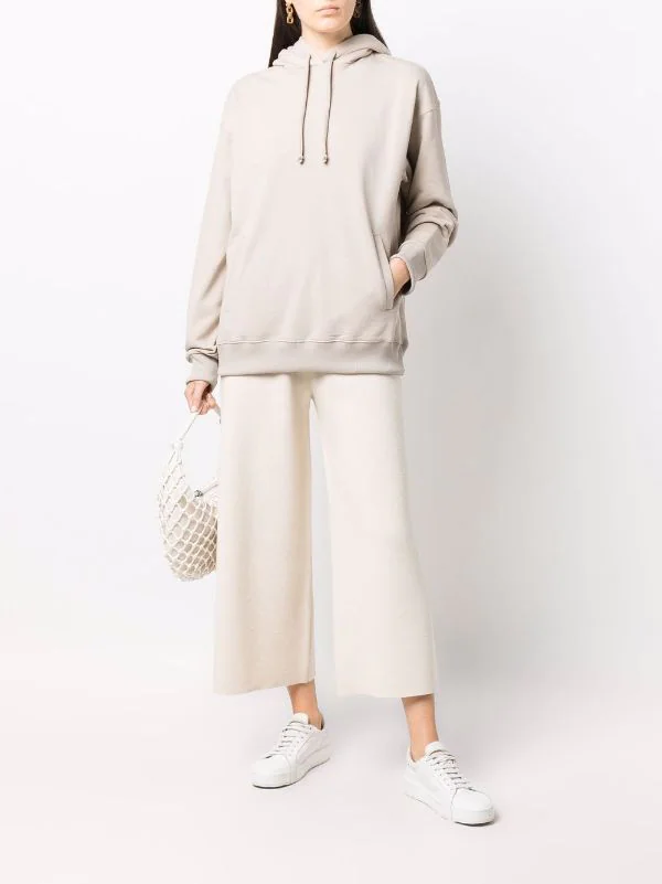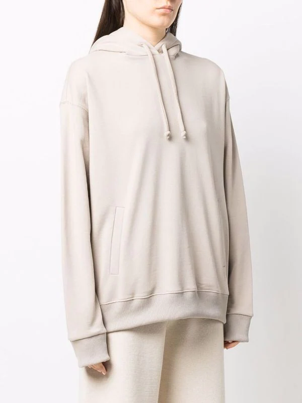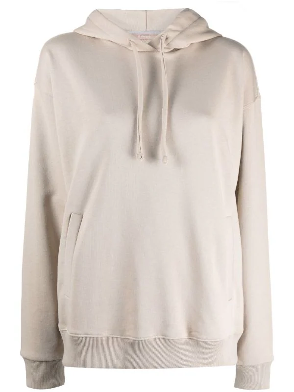Détail nervuré, capuche à lien de resserrage, manches longues, deux poches passepoilées avant. Matière : coton.