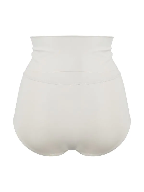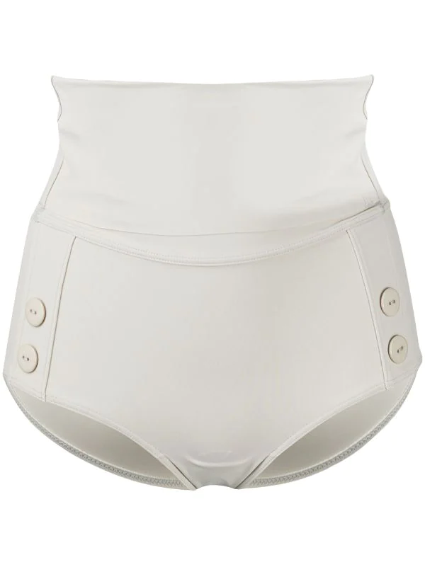 Taille haute, coupe stretch, boutons décoratifs. Veillez à essayer les maillots de bain par-dessus vos sous-vêtements.
