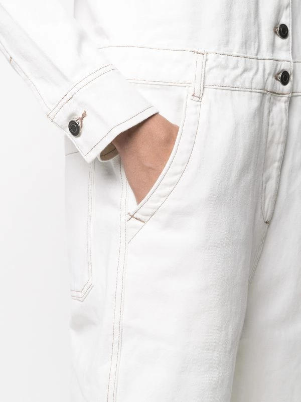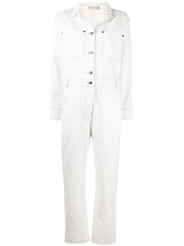 Col classique, boutonnière sur le devant, manches longues, poignets boutonnés, deux poches poitrine plaquées, deux poches latérales passepoilées, poches arrière plaquées. Matière : coton.