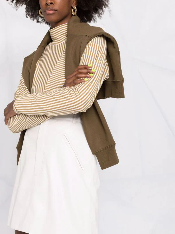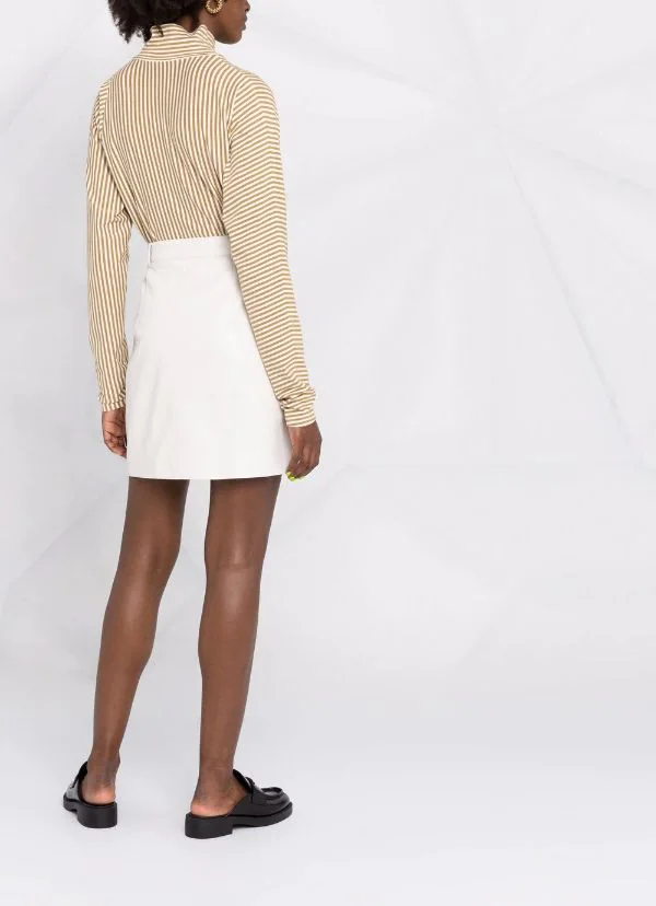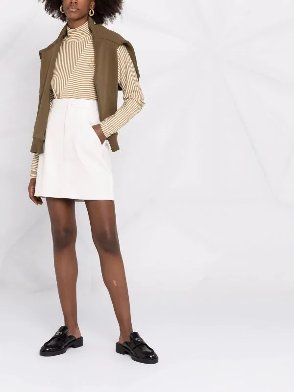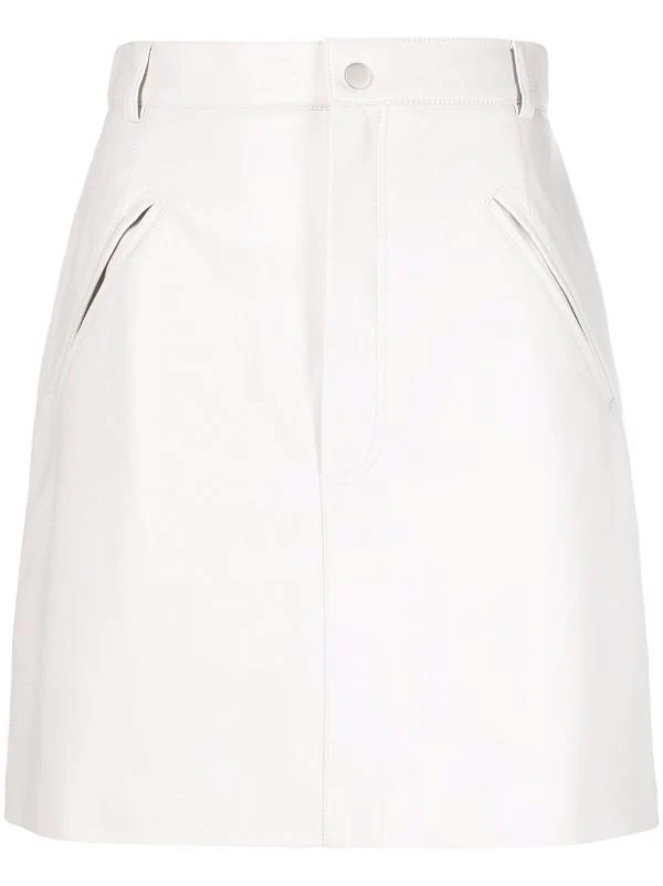 Taille haute, passants de ceinture, fermeture dissimulée sur le devant, deux poches passepoilées avant. Couleur : blanc.