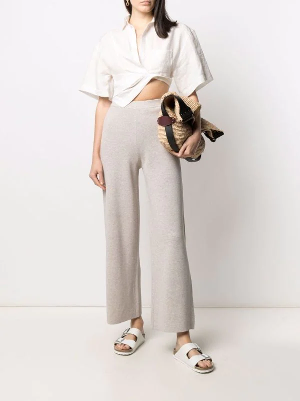 Maille fine, longueur crop, coupe ample, ceinture élastique. Couleur : gris.