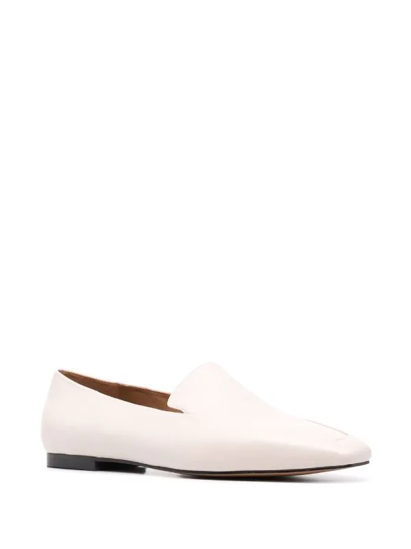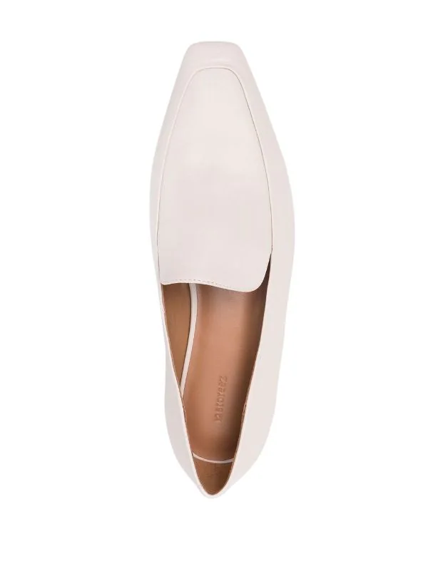 Design à enfiler, coutures ton sur ton, bout pointu, semelle intérieure griffée, petit talon. Matière : cuir.
